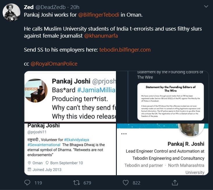 On the other hand, many netizens have taken it upon themselves to keep a constant vigil on the rise of hatred. A few of them on Twitter have started reporting malignant content to the employers of offenders.