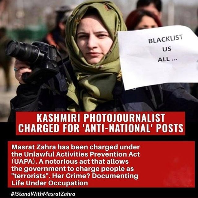 On Monday, the J&K Police invoked draconian UAPA law to book Zahra for allegedly uploading anti-national posts photographs on social media.