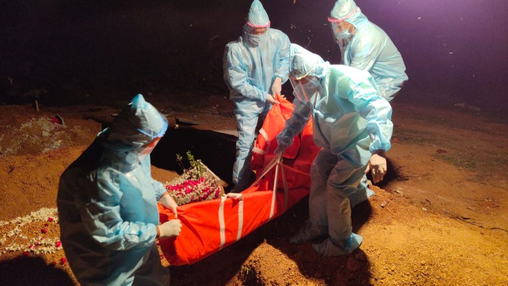 While offering last rites to the dead people, the team takes full precaution by wearing PPE’s and use of sanitizers.
