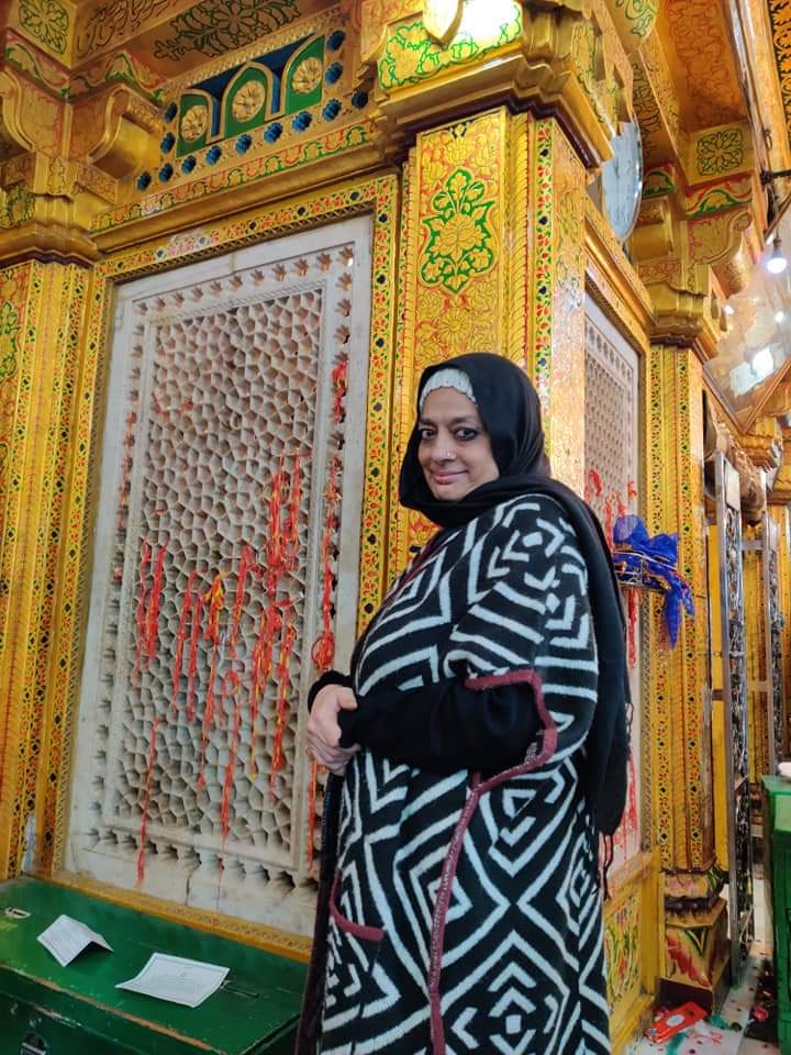 An article by Raza Rumi, a Pakistan based writer describes her as a devout Muslim who prays five times a day and devotes half an hour each morning to a recitation from the Quran. This is followed by a yoga routine because she explains, “I am then equipped emotionally and physically to battle the daily stress of city life.” She is also Diwani of the 22 Khawajas who “protect and bless my city.”