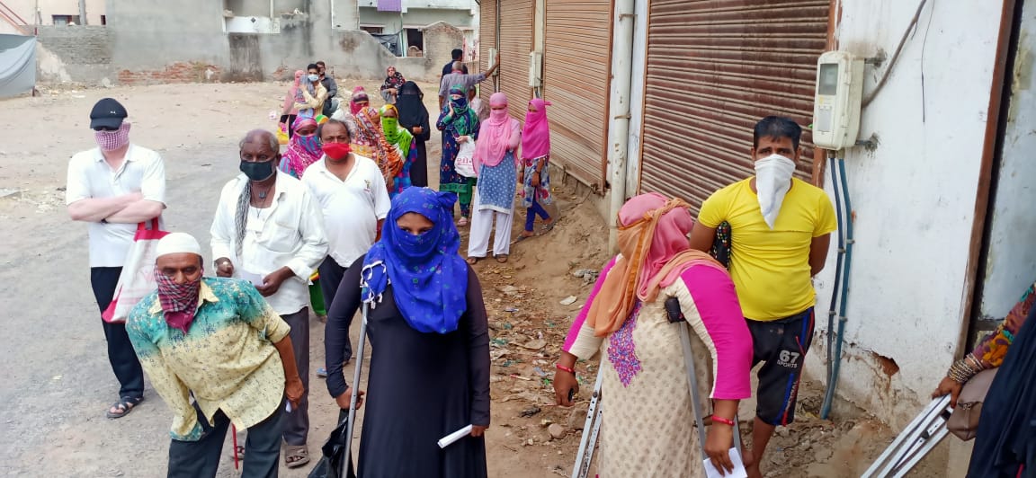 Specially-abled Rajput Fajluddin and his wife, both using crutches, footed it to their far-off ration shop in Muslim-dominated shantytown in Vatva but they were pushed and felled by the milling crowd and the couple had to return home empty-handed.