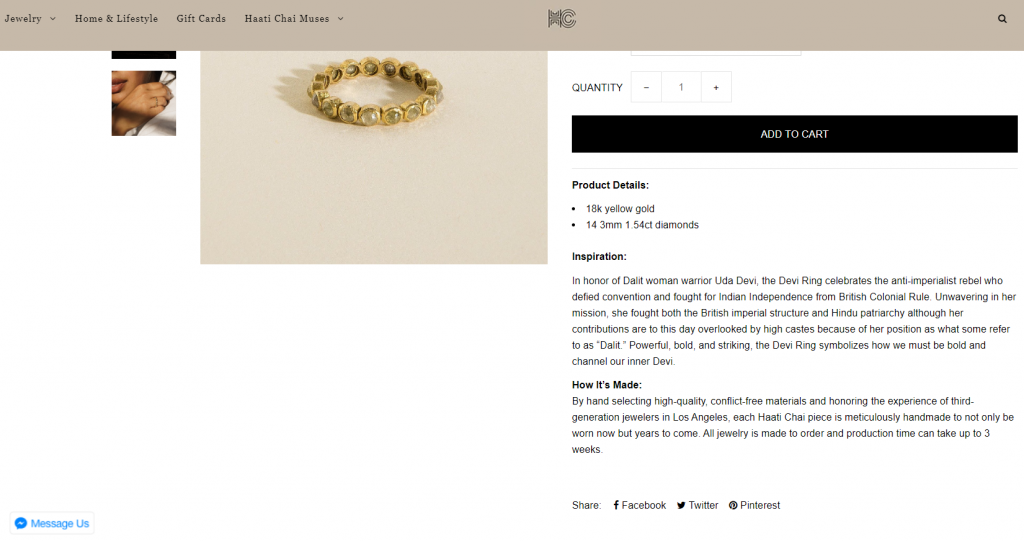 “So far the customers of Haati Chai who have purchased the Dalit/Devi ring from the western world are mostly from the United Kingdom,” said Stella.