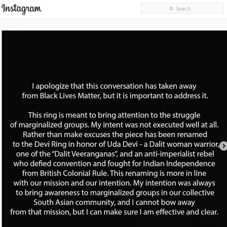 After the backlash from Indian community of Dalits, more so when the #BlackLivesMatter was trending after the death of George Floyd, Stella and her team have communicated through Instagram their intention was to bring attention to the struggle of the marginalised community of Dalits but they failed in its execution.