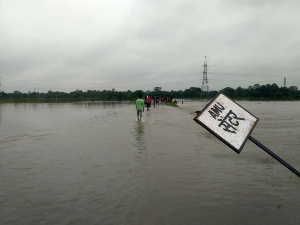 On 11 July this year, the water level started rising and by 12 July water entered into the villages and houses. This caused widespread fear in the villages that the disastrous 2017 flood situation may occur again. The district administration announced 96 hours of red alert. Villagers were quick to respond and settled at raised platforms. But the crops and fields were destroyed, especially the rice crops which were transplanted a day before the waterlogging. They got washed away in the flood.