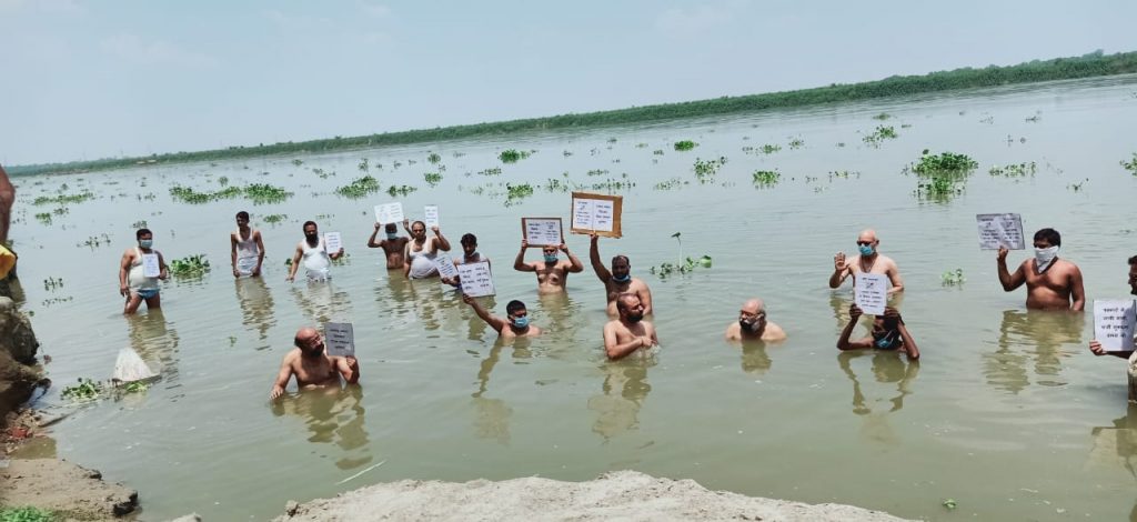 इसी जून माह की एक तारीख़ को एक और घटना हुई। उत्तर प्रदेश के फतेहपुर जिले के दर्जनों पत्रकार हाथों में पत्रकार उत्पीड़न की तख्ती लेकर नदी में नाभि की गहराई तक पानी मे नग्न खड़े हो गए। ये सभी स्थानीय जिलाधिकारी को हटाएं जाने की मांग कर रहे थे,इनका कहना था कि यहां पत्रकारों में डर पैदा करने की कवायद की जा रही है और इसी परिपेक्ष्य में अजय भदौरिया नाम वाले एक वरिष्ठ पत्रकार के विरुद्ध केस दर्ज कर लिया गया।