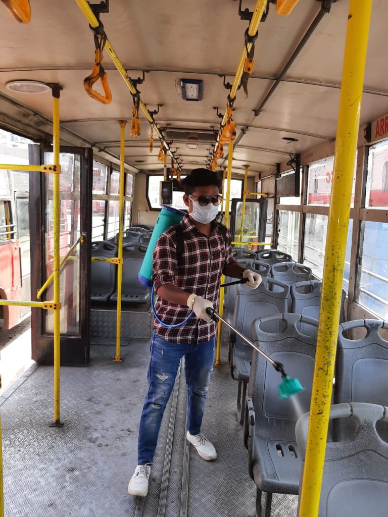 A local bus being sanitized in Ahmedabad[/caption]