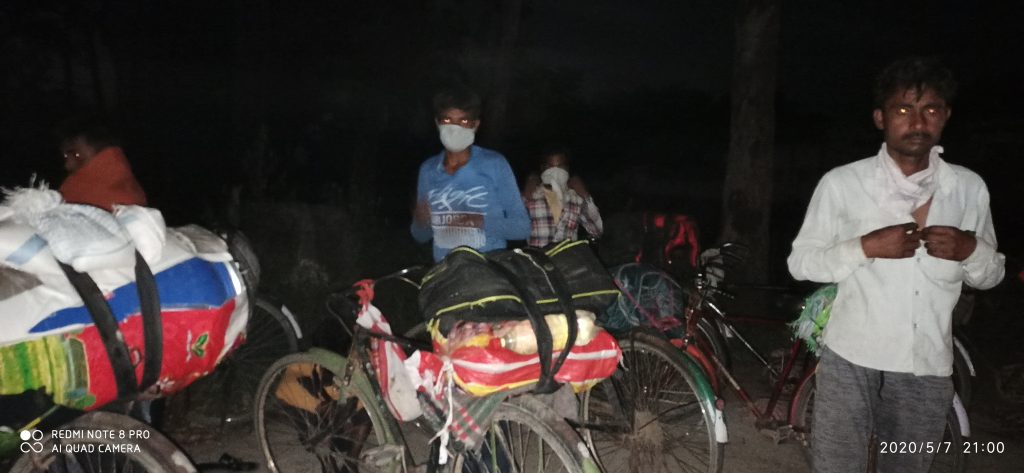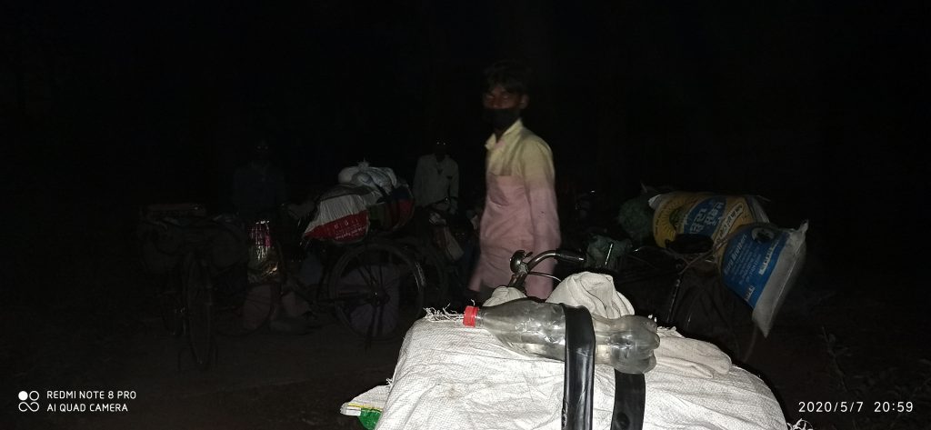 नंदन से बात करते हुए ही एक तीसरा समूह यहां आ जाता है। यह हरियाणा और पंजाब से आएं है। ये कामगार लोग हैं। फेक्ट्री में मजदूरी करते थे। सब साइकिल पर हैं। ननकू (39) को बहराइच जाना है। 400 किमी वो चल चुके है। अभी 600 किमी और जाना है। उनके साथी ज़िलेदार (36) रास्ता नही समझ पा रहे। इस दल में कोई भी अच्छा पढ़ा लिखा नही है। रास्तों की जानकारी नही है। इनका सकारात्मक पहलू यह है कि इनके पास साइकिल है। ज़िलेदार बताते हैं, 'साइकिल होने का तभी लाभ है जब उसे सड़क पर चलाने दिया जाये वहां तो पुलिस हमें जाने ही नही देती। जंगल के न हम रास्ते जानते है और न जंगल मे साइकिल से चलना आसान है। बीमारी से पहले तो एक युद्ध हम खुद से लड़ रहे हैं।'