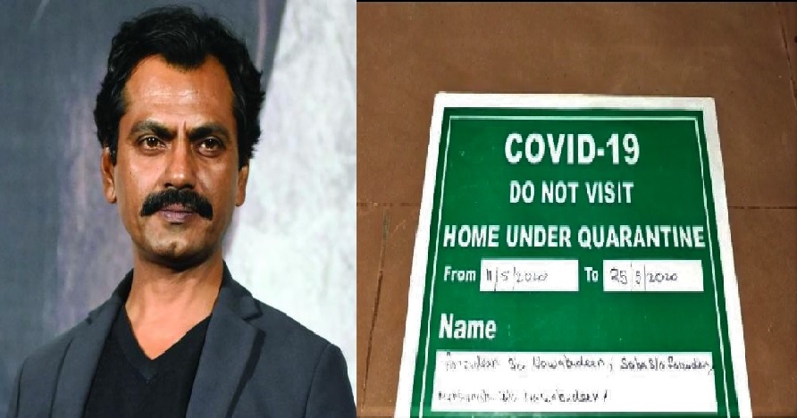 बॉलीवुड के जाने-माने स्टार नवाज़ुद्दीन सिद्दीक़ी को उत्तर प्रदेश के मेरठ ज़िले के बुढ़ाना गांव में उनके पुशतैनी घर पर परिवार सहित 14 दिन के क्वारंटीन किया गया है। उनके घर के बाहर “COVID-19, Do not visit, Home Under Quarantine’ का पोस्टर लगाया गया है। इसका मतलब है, 'यह घर क्वारंटीन किया गया है, यहां मिलने मत आईए।' इस पोस्टर लिखा है कि इस घर को 11 से 25 मई 2020 तक क्वारंटीन किया गया है।
