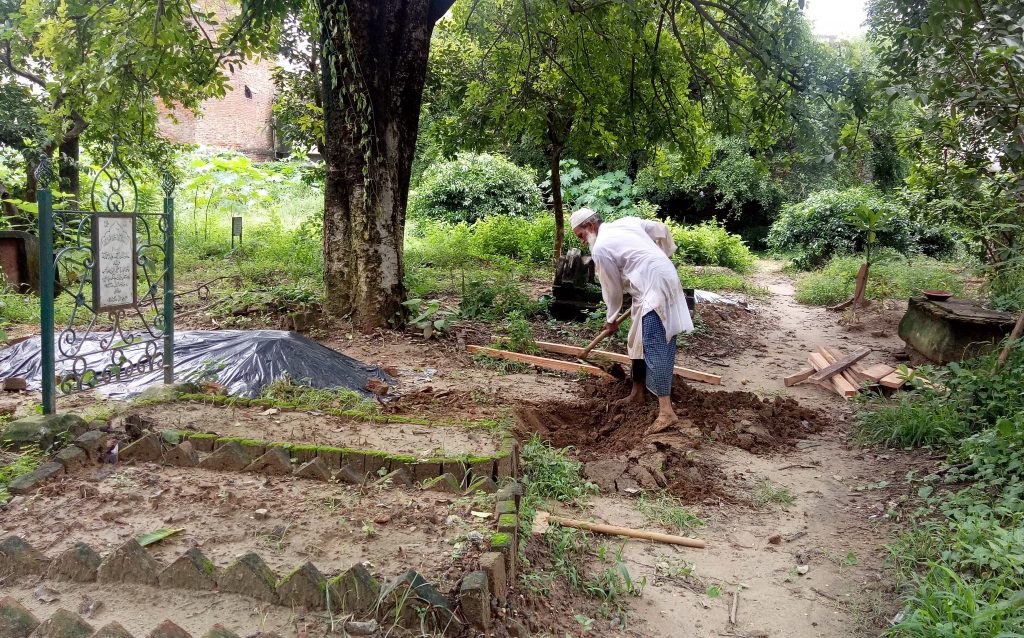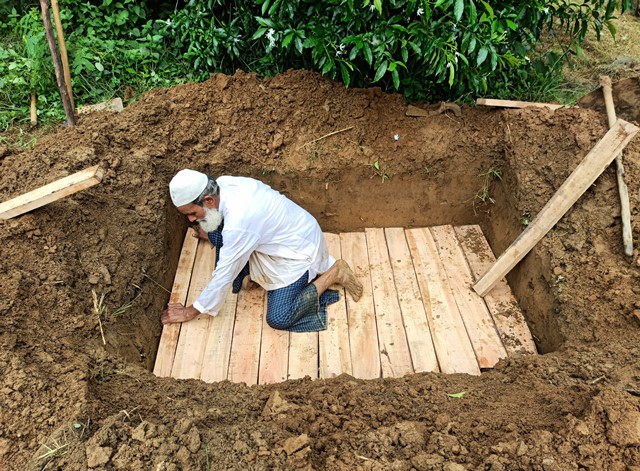 For Iqbal, the outbreak of COVID-19 has brought great distress. “I have to be very precautious otherwise they will keep me in quarantine,” he says. Iqbal digs the grave for both COVID and non-COVID patients.