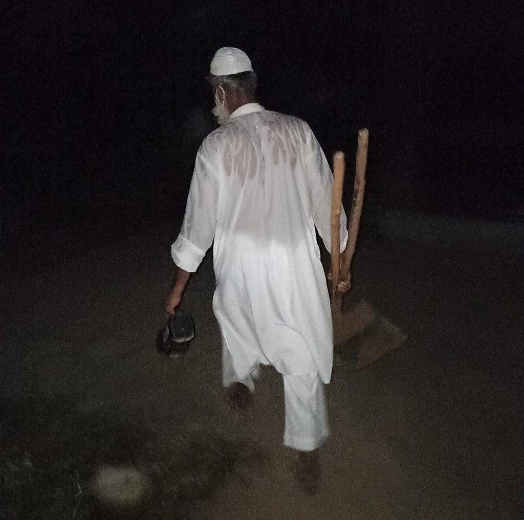 Iqbal walks towards his room where he puts his tools and washes his hands after digging.[/caption]