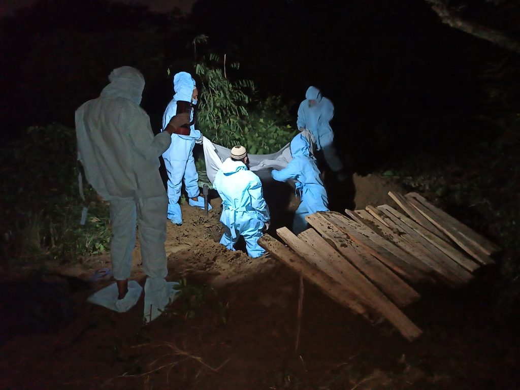 Burial of a corona infected person with proper precautions.[/caption]