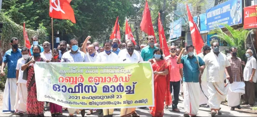 In late February this year, Kerala Karshaka Sangham – Kerala chapter of the All India Kisan Sabha (AIKS) marched in protest against the ASEAN agreement towards the regional office of Rubber Board in Thiruvananthapuram.