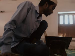 मोहम्मद मुजम्मिल अपने रोज़ा के दौरान एक समय के लिए भी खुदा को याद करना नही छोड़ते हैं, खुदा की पाक किताब कुरान शरीफ को पढ़ते हुए।[/caption]