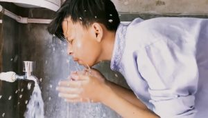 "सफाई ही आधा ईमान है" वजू के लिए खुद के चेहरे को धोता नन्हा शादमान शैख।[/caption]