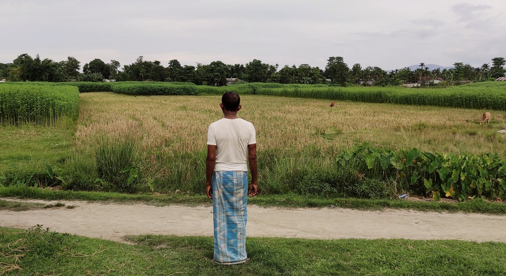 Hanif Ali, a farmer looks towards the farmland cultivated by him and his fellow villagers at Fuhuratoli village. | Photo by Mahibul Hoque[/caption]