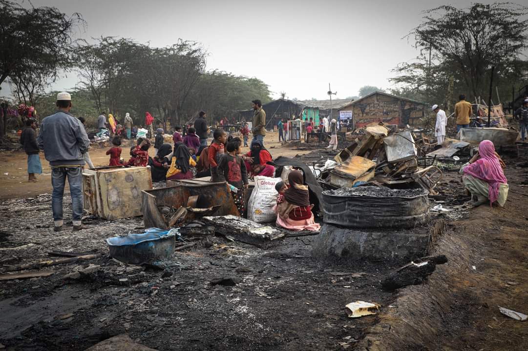 रोहिंग्या ह्यूमन राइट्स इनिशिएटिव के जाफरुल्लाह ने मीडिया से बातचीत में बताया कि बुधवार लगभग रात आठ बजे के आसपास आग लगी और एक झोंपड़ी से फैल गई और शिविर में अन्य झोंपड़ियों को अपनी चपेट में ले लिया। प्रत्यक्षदर्शियों के अनुसार, लोगों ने शोर मचाया और अफरा-तफरी मच गई। कोई व्यक्ति घायल नहीं हुआ। दो दुकानों को छोड़कर अधिकांश झुग्गियां पूरी तरह जलकर खाक हो गईं। कैंप में रहने वाले बच्चों समेत कुल 102 लोग विस्थापित हुए हैं। अधिकारी और आसपास के ग्रामीण रात के लिए एक स्कूल और आसपास के घरों में अस्थायी आवास की व्यवस्था कर रहे हैं।