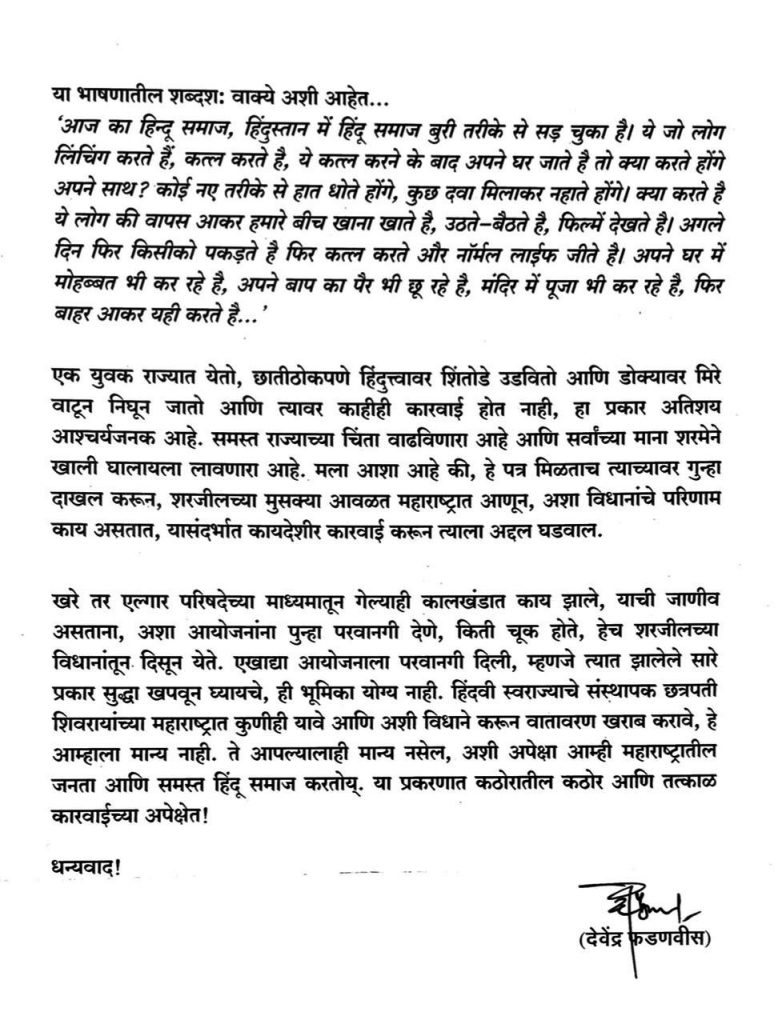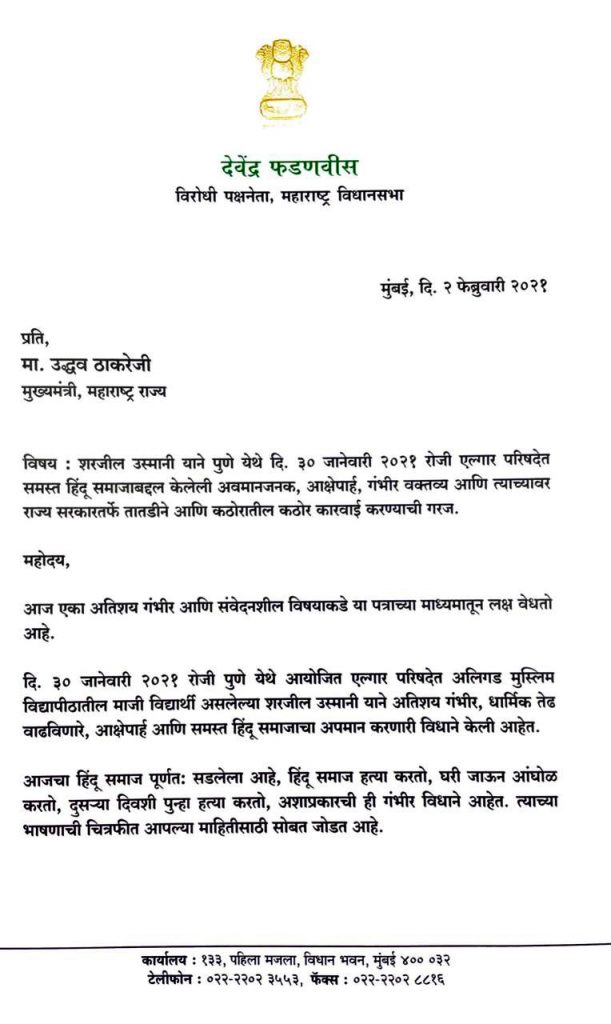 इससे पहले महाराष्ट्र के पुणे में भी शरजील उस्मानी के खिलाफ इसी मामले में केस दर्ज किया जा चुका है। भाजपा युवा मोर्चा के सचिव और अधिवक्ता प्रदीप गावड़े की शिकायत के आधार पर उस्मानी के खिलाफ आईपीसी की धारा 153 (ए) के तहत स्वारगेट थाने में मामला दर्ज किया जा चुका हैं। महाराष्ट्र के पूर्व मुख्यमंत्री और विपक्ष के नेता देवेंद्र फडणवीस ने शरजील उस्मानी के खिलाफ राज्य सरकार को पत्र लिखकर कड़ी कार्यवाही की मांग करी थी। इसके बाद मामले ने तूल पकड़ना शुरू कर दिया था। महाराष्ट्र के बीजेपी नेताओं की ओर से शरजील की जल्द गिरफ्तारी की मांग की जा रही है। साथ ही उसके खिलाफ दर्ज मामले में आईपीसी की धारा 124-A यानी राजद्रोह का आरोप जोड़ने की मांग की गई है। बीजेपी ने चेतावनी भी दी थी कि अगर महाराष्ट्र सरकार शरजील पर कार्रवाई नहीं करती हैं तो वे राज्यव्यापी आंदोलन करेंगे। फड़नवीस ने इस मामले में महाराष्ट्र की महाविकास अघाड़ी सरकार पर आरोप लगाया कि वो शरजील के प्रति नरमी से पेश आ रही है जबकि उस्मानी के भाषण से हिंदुओं की भावना आहत हुई है।