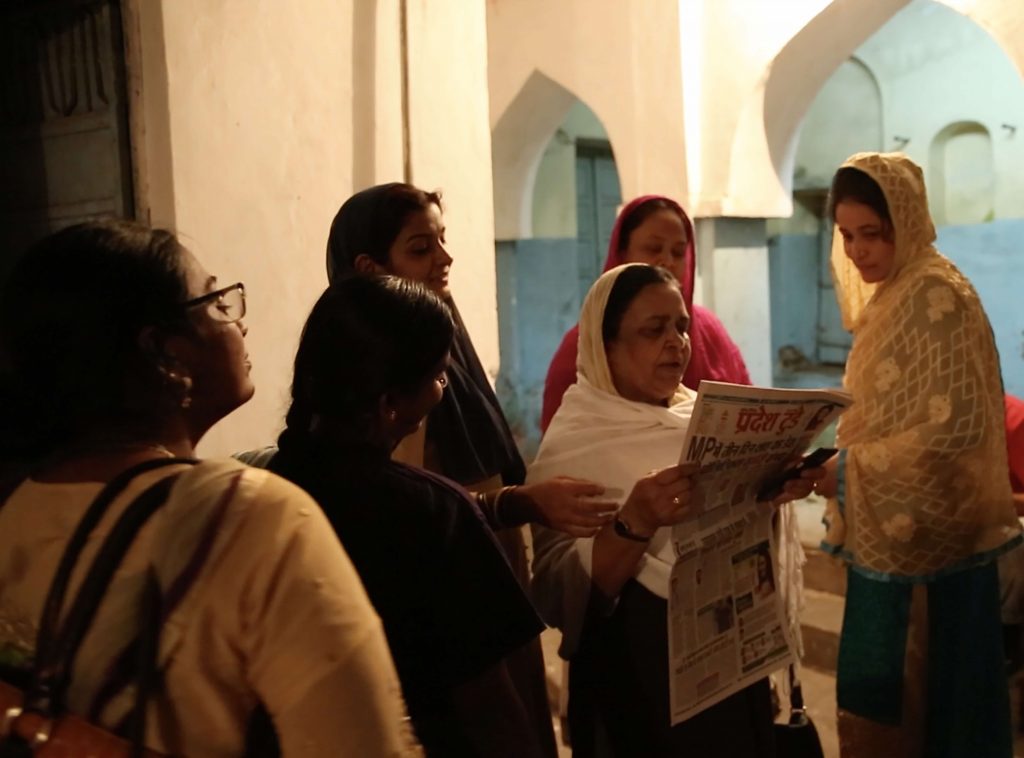 To counter the popular narrative about Muslims lacking love for the country, the filmmaker underlines the patriotism among these women by showing them singing “jis desh mein Ganga behati hai” and putting up a play which speaks of Constitution with great respect. We see through this filmed play, how these women locate the rights of Muslim women within the Constitutional values. We see how the women identify themselves as rightful citizens of the country which, at least in its Constitution, guarantees them liberty, equality and justice.
