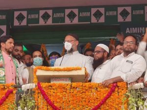 बहराइच । उत्तर प्रदेश की राजनैतिक सरगर्मियों में आज गर्म दिन था। अगले वर्ष होने जा रहे विधानसभा चुनाव में 100 सीटों पर चुनाव लड़ने की घोषणा करने वाले आल इंडिया मजलिस-ए-इत्तेहादुल मुस्लिमीन के अध्यक्ष और हैदराबाद सांसद असदुद्दीन ओवैसी आज यूपी के बहराइच में थे। आज असदुद्दीन ओवैसी बहराइच अपने पार्टी के पहले कैंप कार्यालय का उद्घाटन करने पहुंचे। असदुद्दीन ओवैसी ने इससे पहले लखनऊ पहुंच कर सुहेलदेव भारतीय समाज पार्टी के ओमप्रकाश राजभर से भी मुलाकात की।