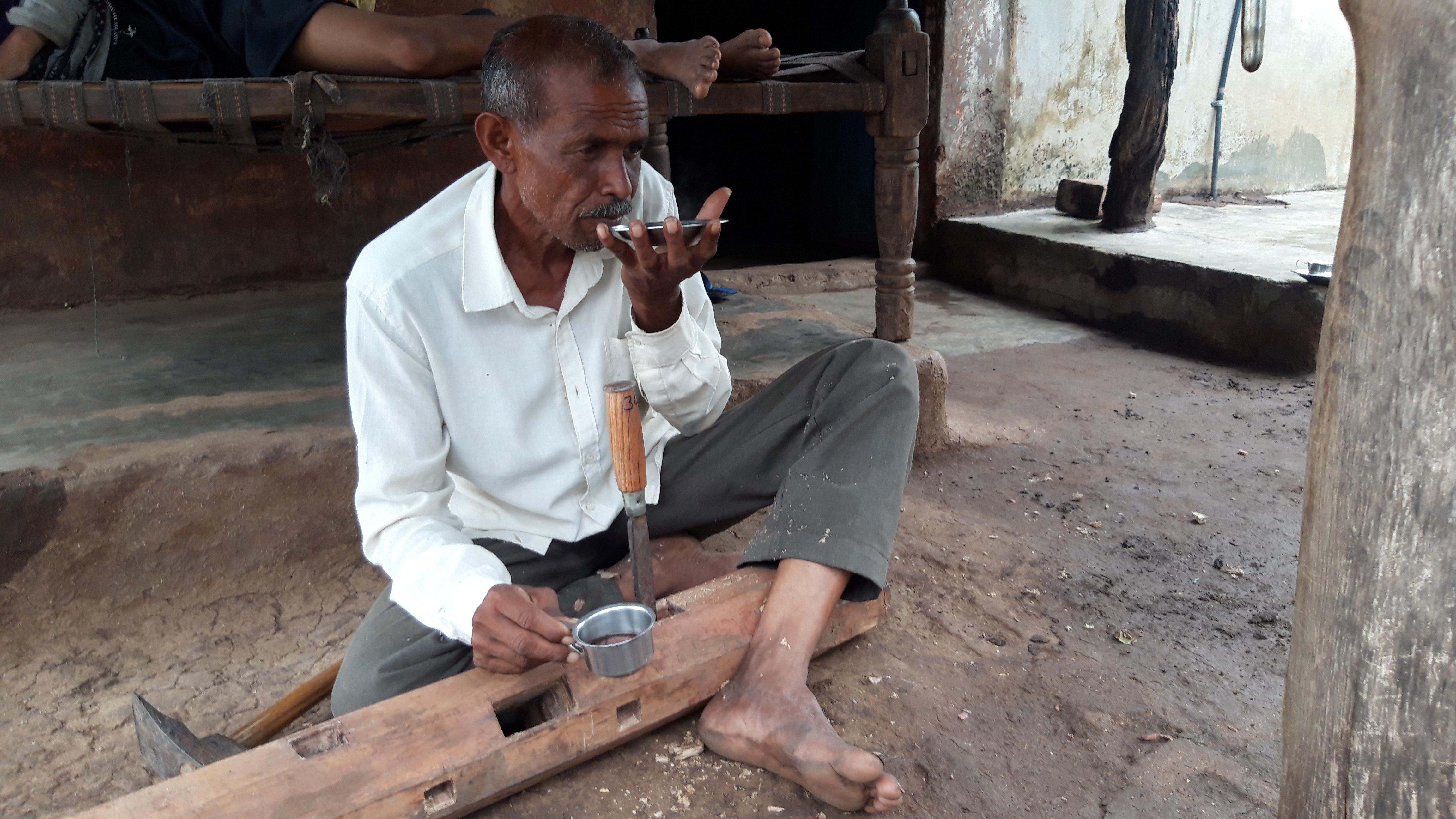 After finishing work, Gopal Bhai taking rest and drinking black tea. | Photo by Mitesh Vasava[/caption]