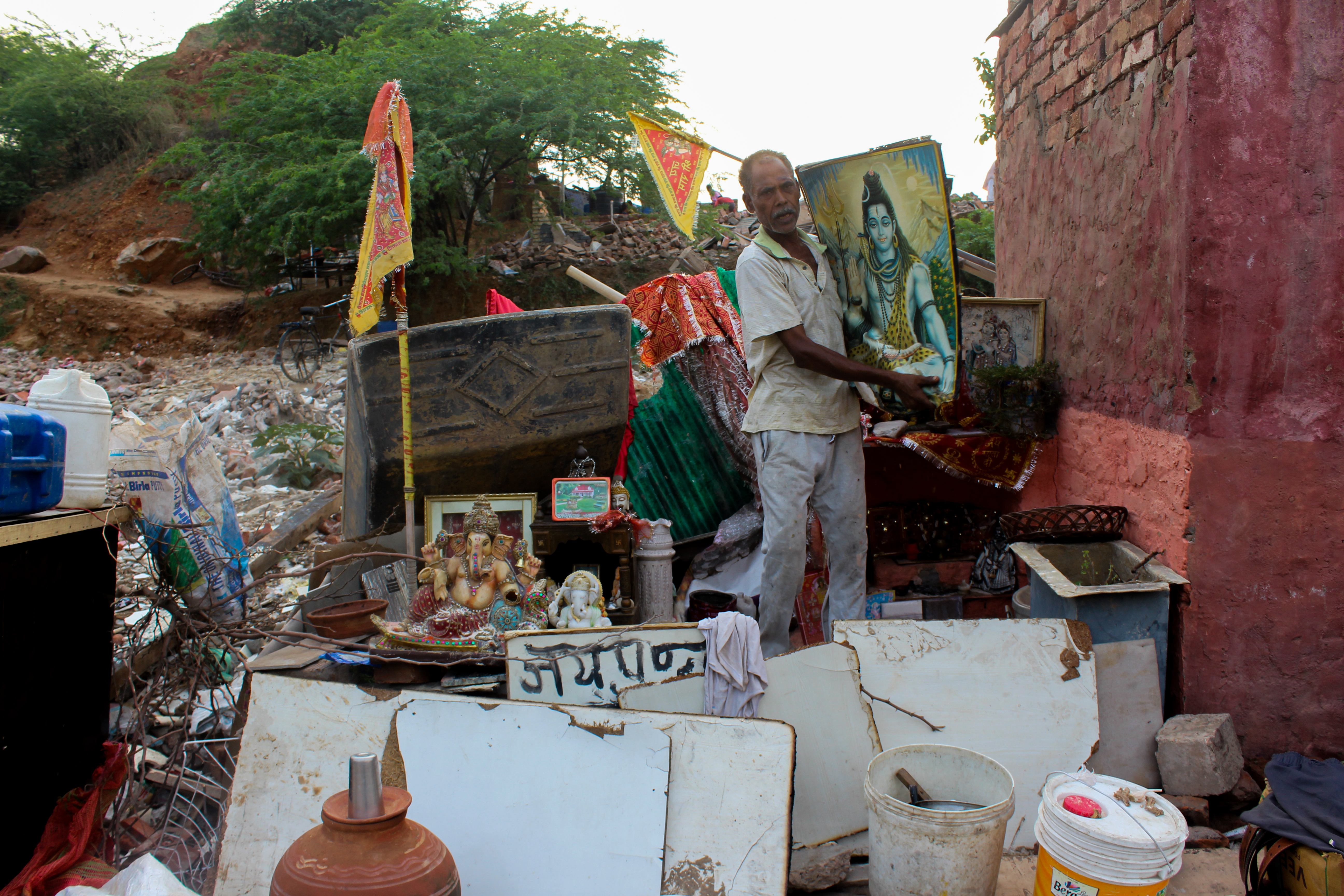 Madan Lal Malhotra, 55, is seen arranging the temple belongings before demolition. | Photo by Shadab Farooq[/caption]
