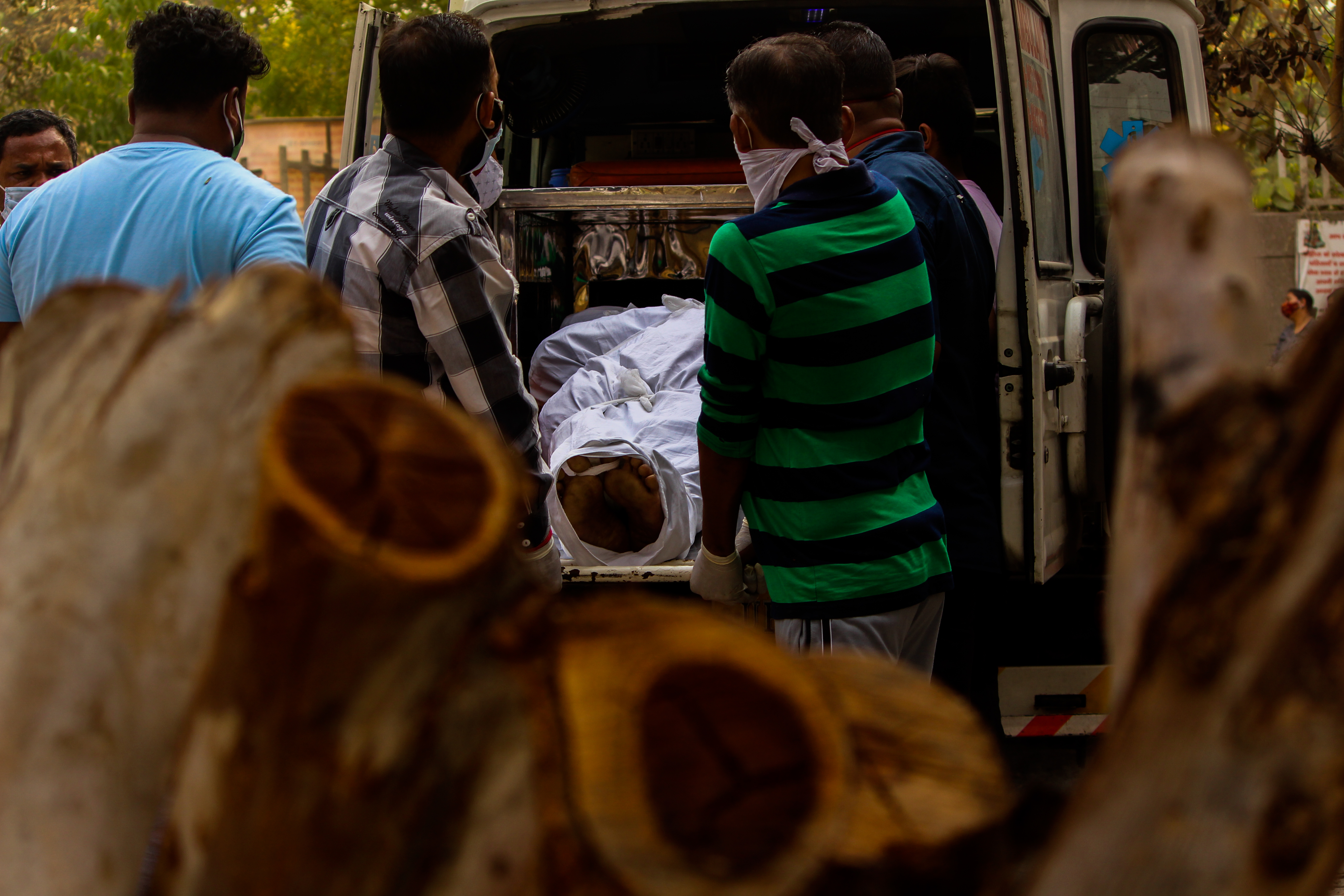 Family members carrying out the body from an ambulance, New Delhi. | Photo by Shadab Farooq[/caption]
