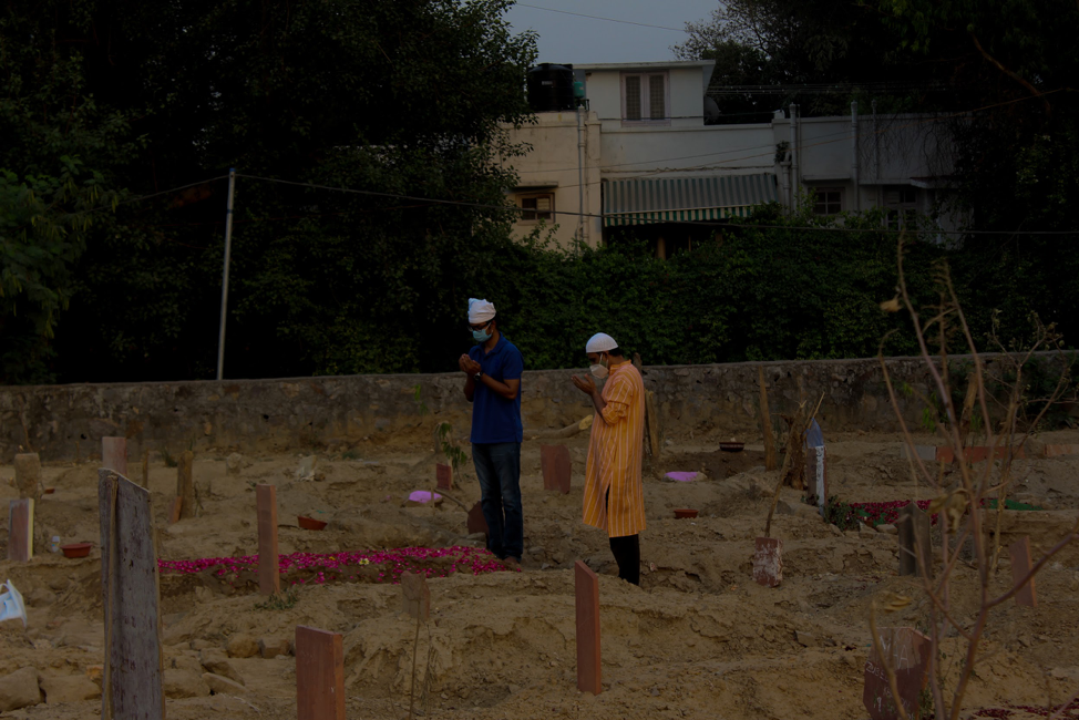A family offering final prayers after the burial at Delhi Gate graveyard. | Photo by Shadab Farooq[/caption]