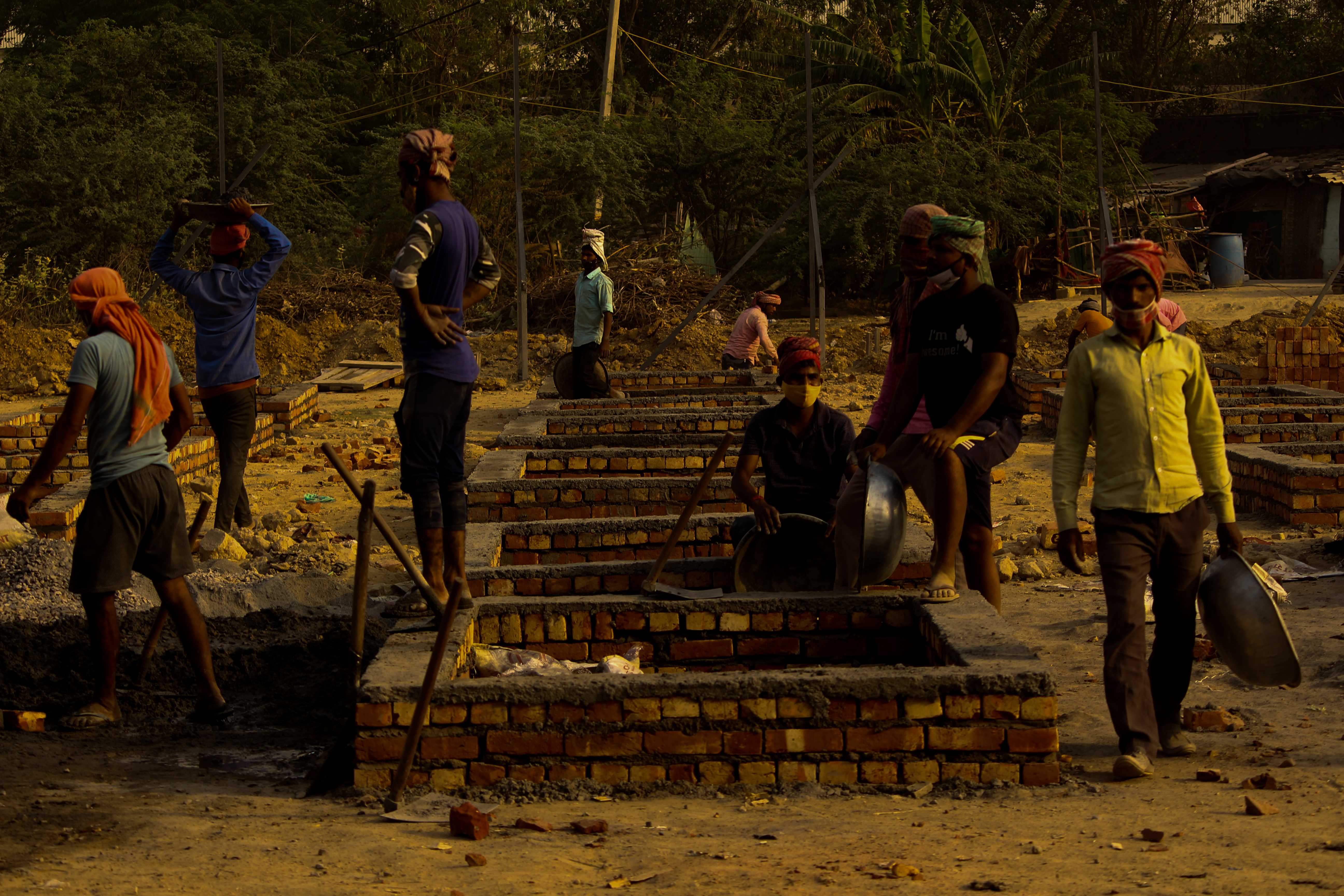Workers seen constructing more pyres in Sarai Kale Khan cremation centre in New Delhi. | Photo by Shadab Farooq[/caption]