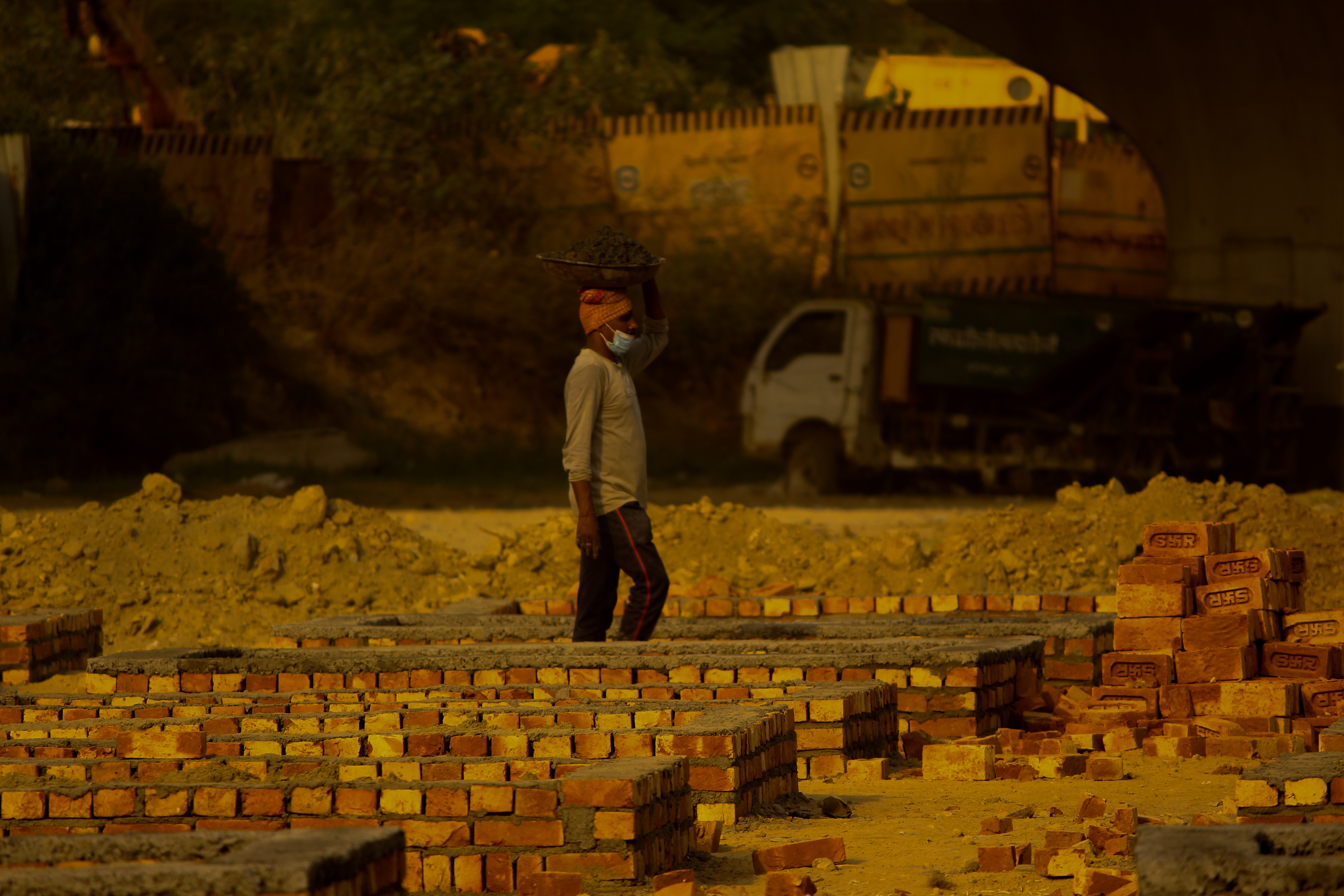 It's 5 p.m., and Manjeet Kumar, a 28-year-old bulldozer operator at Central Vista Project, New Delhi is getting ready to leave for his rented apartment in Chhatarpur, New Delhi. “I work here until five o'clock in the evening, but I may not come to work tomorrow because I haven't felt good for the past two days.”