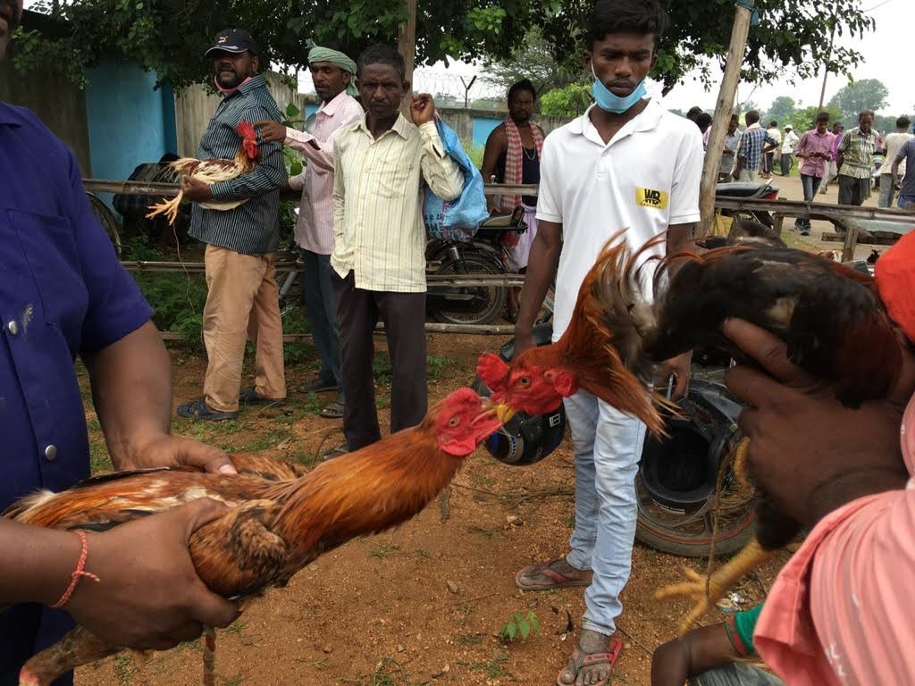 Cock fights at the Haat attract many sellers. | Photo by Abhishek Basu[/caption]