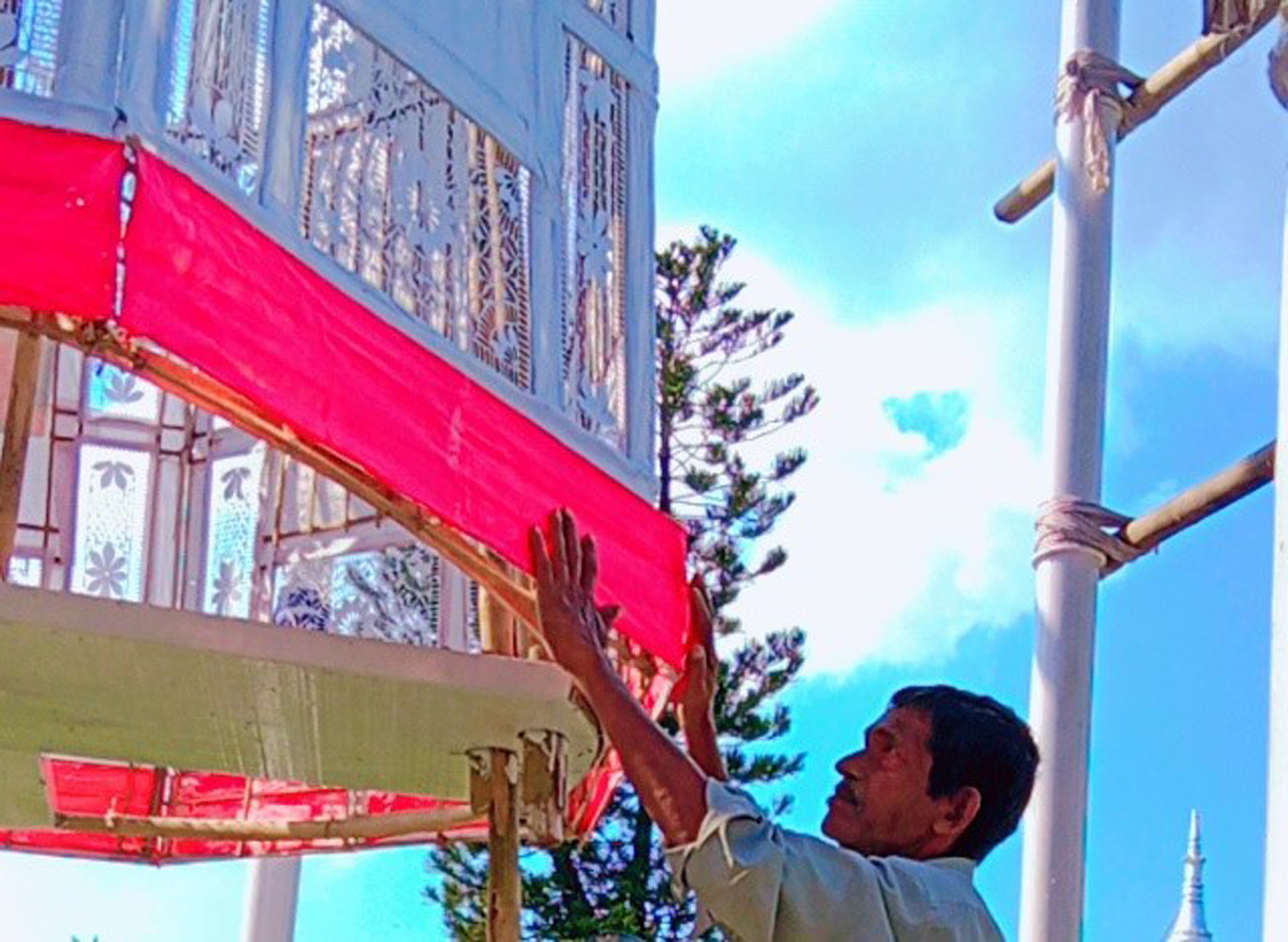 Altaf Miya fixing the Rashchakra at the Rash Mela in Cooch Behar. | Picture by arrangement[/caption]