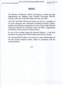 तो अब सवाल यह उठता है कि क्या मौलाना आज़ाद नेशनल फैलोशिप सामाजिक न्याय और अधिकारिता मंत्रालय द्वारा दी जाने वाली नेशनल फॉर ओबीसी एससी एसटी फैलोशिप से ओवरलेपिंग कर रही थी ! लेकिन यह कैसे संभव हो सकता है नेशनल फॉर ओबीसी एससी एसटी फैलोशिप मात्र अनुसूचित जाति और अन्य पिछड़े वर्गों के छात्रों को दी जाती हैं। फिर अल्पसंख्यक समुदाय के समान्य छात्रों का क्या होगा ? उन्हें इस फैलोशिप का लाभ मिलेगा? इन सवालों का जवाब तलाशने के लिए छात्र नेता अब्दुल हमीद से बात की।