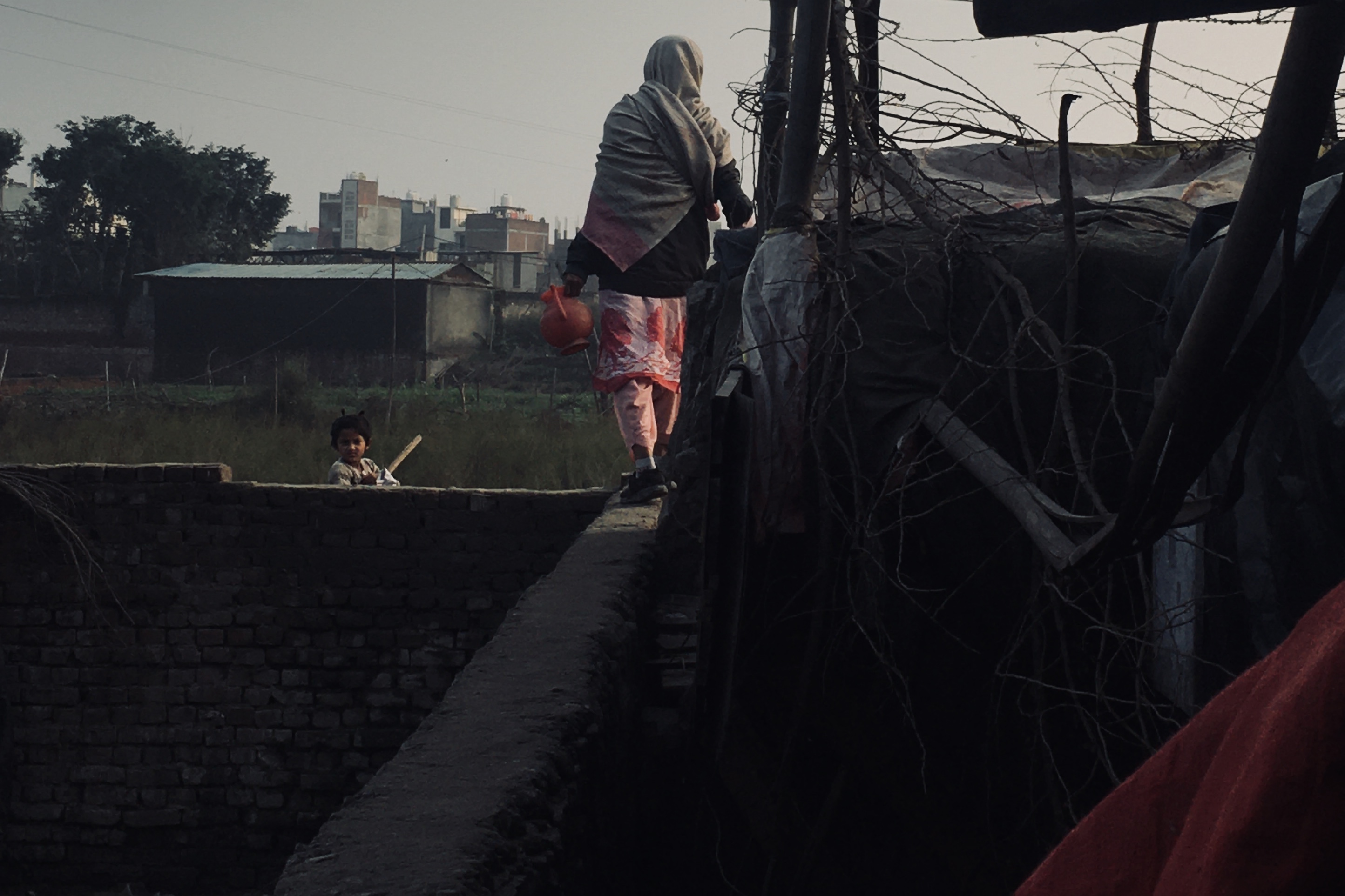 Many kids from the community play in the barren land across the wall. “The field is commonly used as washrooms during the day,” Fatima said.