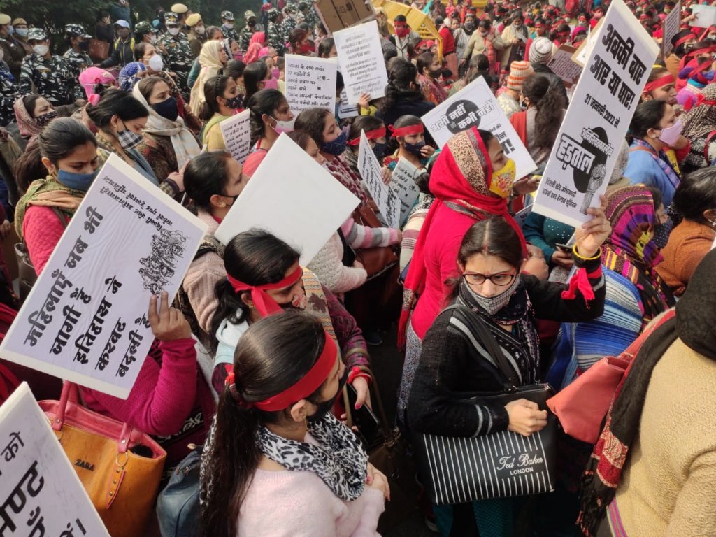 Hundreds of Anganwadi workers from Delhi, Haryana demand govt worker status, pay hike, other amenities