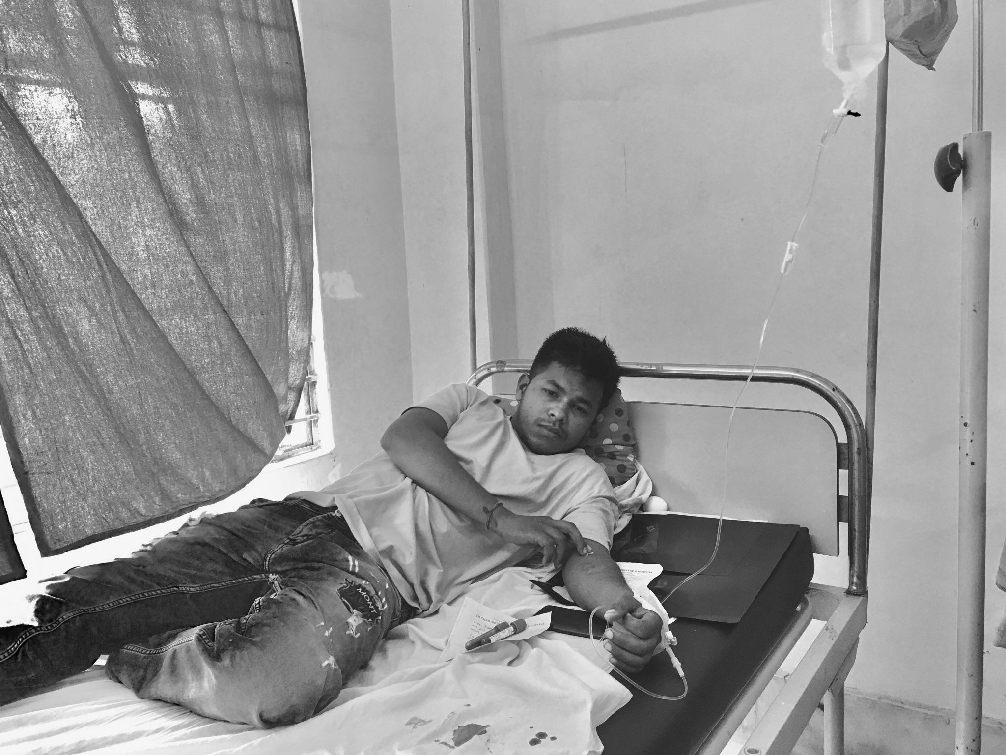 Apu Hazarika admitted to Silchar Medical College after being badly injured during the recent clashes of the recent weeks now waiting in anticipation of discharge papers. Silchar, India. | Photo by Abhishek Basu[/caption]
