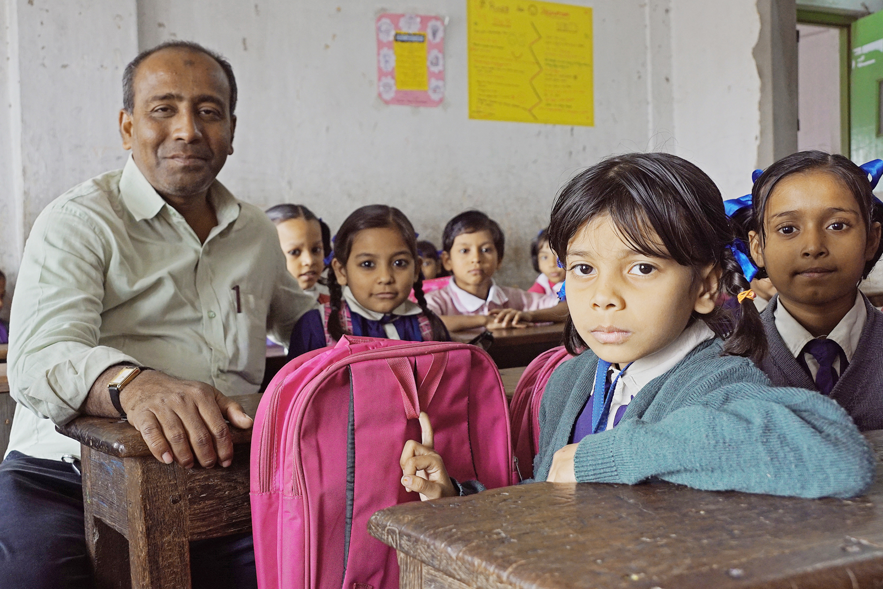 Mamoon Akhtar with the students of his school. | Photo by Partho Burman[/caption]