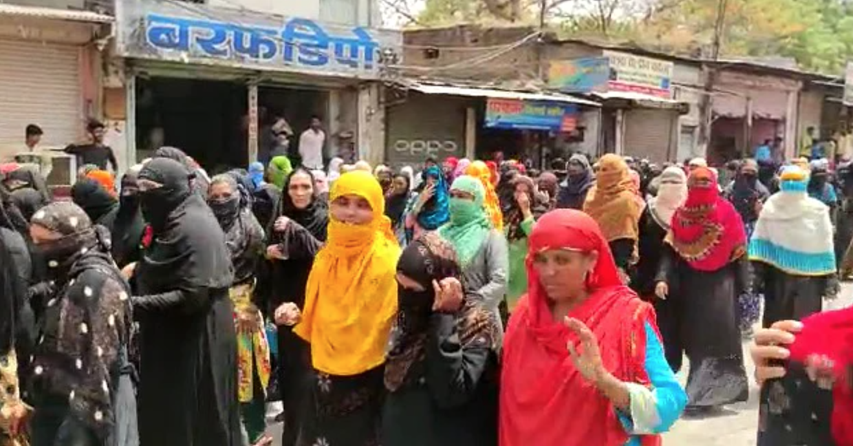 KHARGONE, MADHYA PRADESH — Scores of Muslims in Madhya Pradesh’s Khargone Tuesday marched the streets in protest against the “police-highhandedness” and accused the police force of arresting innocent Muslim youth during nocturnal raids. Those who participated in the protest included women and children.