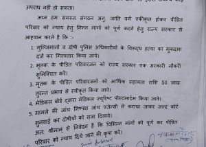 सुसाइड नोट के अनुसार जब घटना की शिकायत लेकर पुलिस के पास गए वहां भी कोई शिकायत नहीं दर्ज की गई बल्कि वहां से कल आने को कहकर डरा धमकाकर भेज दिया गया। ऐसे ही कुछ दिनों तक चलता रहा। जब पीड़ित ने कोर्ट में जाने की बात कही तो पुलिस ने नाममात्र केस को हल्का बनाने के लिए दूसरी धाराओं में एफआईआर दर्ज कर ली। एफआईआर दर्ज होने के बाद भी कोई कार्रवाई नहीं की गई। [caption id="attachment_447368" align="alignnone" width="300"]