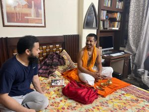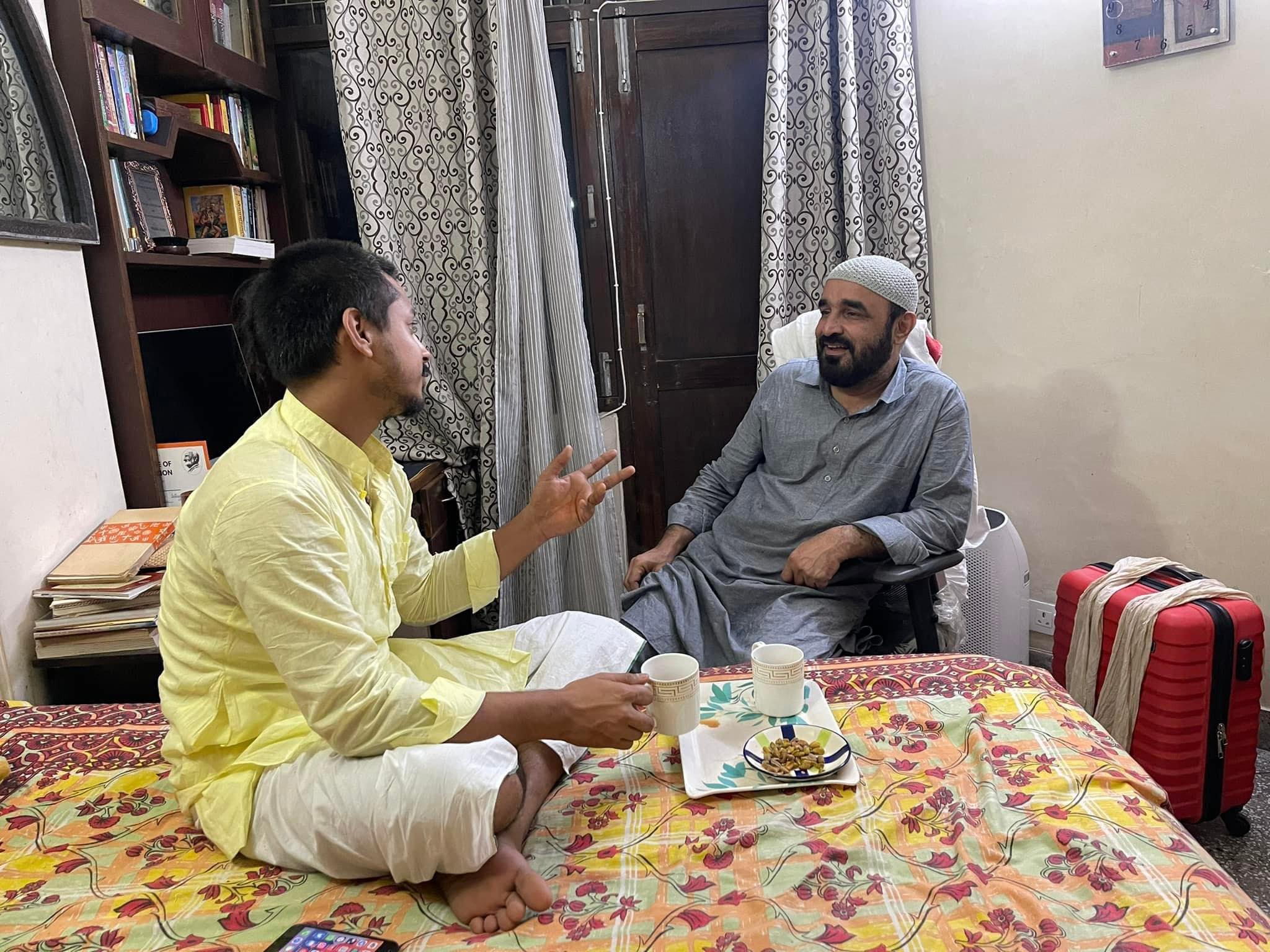 शाम को हम वापिस घर आये और आते ही स्वामी जी अपनी संध्या और पूजा पाठ में लग गये । पूजा पाठ से फारिग होकर बाहर आकर चर्चा शुरू की ! अब धीरे-धीरे लगने लगा के संत राघवेन्दर दास ने तुलसी दास की चौपाई " मिलैह न रघुपति बिन अनुरागा.." अपनी ज़िंदगी में पूरी तरह से उतार ली है ! ये बात सिर्फ बोलने में नहीं, बल्कि उनके उठने ,बैठने ,मिलने जुलने ,खाने और पीने जैसे हर एक्शन से ज़ाहिर होती रही । सुबह सुबह संत राघवेंद्र जी ब्रह्म महूर्त में स्नान वगैरह के बाद पूजा में लग जाते थे और मैं सुबह पांच बजे फजिर की नमाज़ के लिए उठ जाता नमाज़ के बाद करीब साढ़े पांच बजे हम दोनों ही फ्री हो जाते थे ! हमारे बाकी साथी सो रहे होते थे और हम चाय लेकर बैठ जाते थे ! ऐसा बैठते की समय का पता ही नहीं चलता । पहले दिन तो साढ़े सात बजे जब नाश्ते के लिए हमें बुलाया गया और दूसरे दिन आठ बज गए ! इसमें चर्चा का विषय गीता ,कुरान ,हदीस ,दर्शन ,मीरा ,कबीर मौजूदा माहौल सभी पर रहता और अपने अपने तजुर्बे और कई बार आंखे भर जाने की नौबत आ जाती थी ,जो मेरे नज़दीक सारी चर्चाओं और तजुर्बो से कही बड़ी दौलत है।