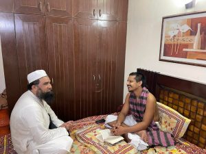 पता ही नहीं चला कैसे तीन दिन बीत गए और इस दौरान आपस में आने वालो से में खूब चर्चाओं का दौर रहा ! लोग आते रहे साथियो ने एक छोटा सा अभिनंदन का कर्यक्रम भी रखा पूरे दिन ज़ोरदार बारिश के बाद भी बुलाये गए नब्बे प्रतिशत साथी जिनकी तादाद करीब 23 थी पहुंचे राघवेंद्र जी ने बेहतरीन बात की जिसमे संत ,धर्म ,नफरत सब पर बात की l हम सबके लिए संत राघवेंद्र जी जैसे मेहमान को विदा करना कभी आसान नहीं होता है क्योंकि ये वह मेहमान है, जो साथ में दिल ले जा रहे होते है। अपने संग की बेहतरीन यादे छोड़ जाते है । मोहब्बत की यादे, इंसानियत की यादे, हमें पता ही नहीं चला कि कैसे तीन दिन बीत गए । वैसे भी ज़िन्दगी के खूबसूरत लम्हे बहुत जल्द गुज़र जाते हैं । राघवेंद्र जी के जाने का वक़्त आ गया । हमें लगा की इस दौर में भी मोहब्बत, इंसानियत, करुणा, दर्दमंदी का जो चिराग़ हमारे पास था, अब अगले पड़ाव पर निकल रहा है । बस एक तसल्ली है कि ऐसे चिराग की रोशनी तो हर जगह पहुँचना ज़रूरी है ताकि नफरत के अँधेरे छँट जाएँ और मोहब्बत आम हो जाये ।