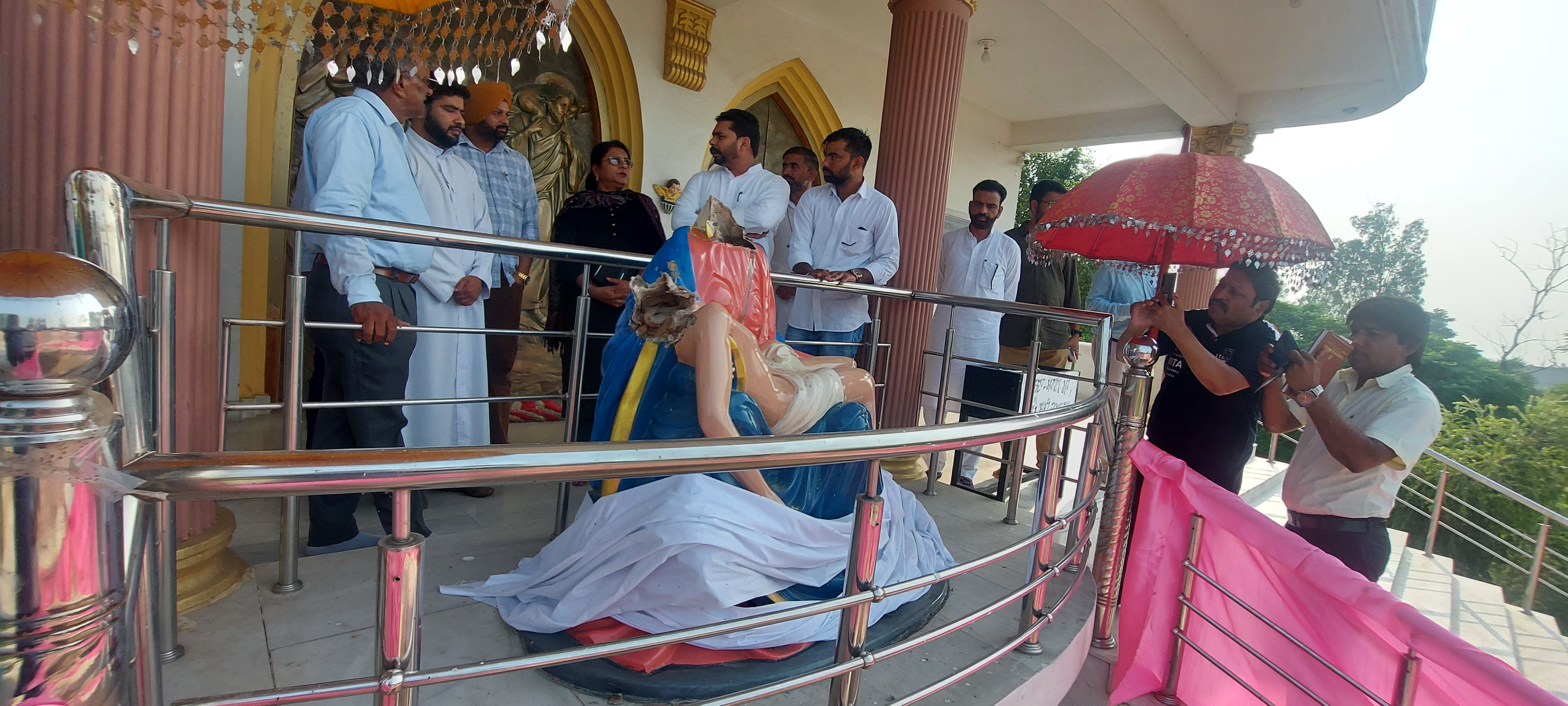 The “armed” intruders vandalized a statue of Jesus Christ and Mother Mary at the entrance of the prayer hall on the first floor of the church and took their heads away.
