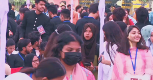इस दिन, यहां ज्यादातर छात्र-छात्राएं परंपरागत पोशाक में नज़र आते हैं। जहां लड़के काली शेरवानी पहनते हैं तो लड़कियां रंगीन दुपट्टों के साथ सफेद सलवार कुर्तियां पहनना पसंद करती हैं।[/caption]