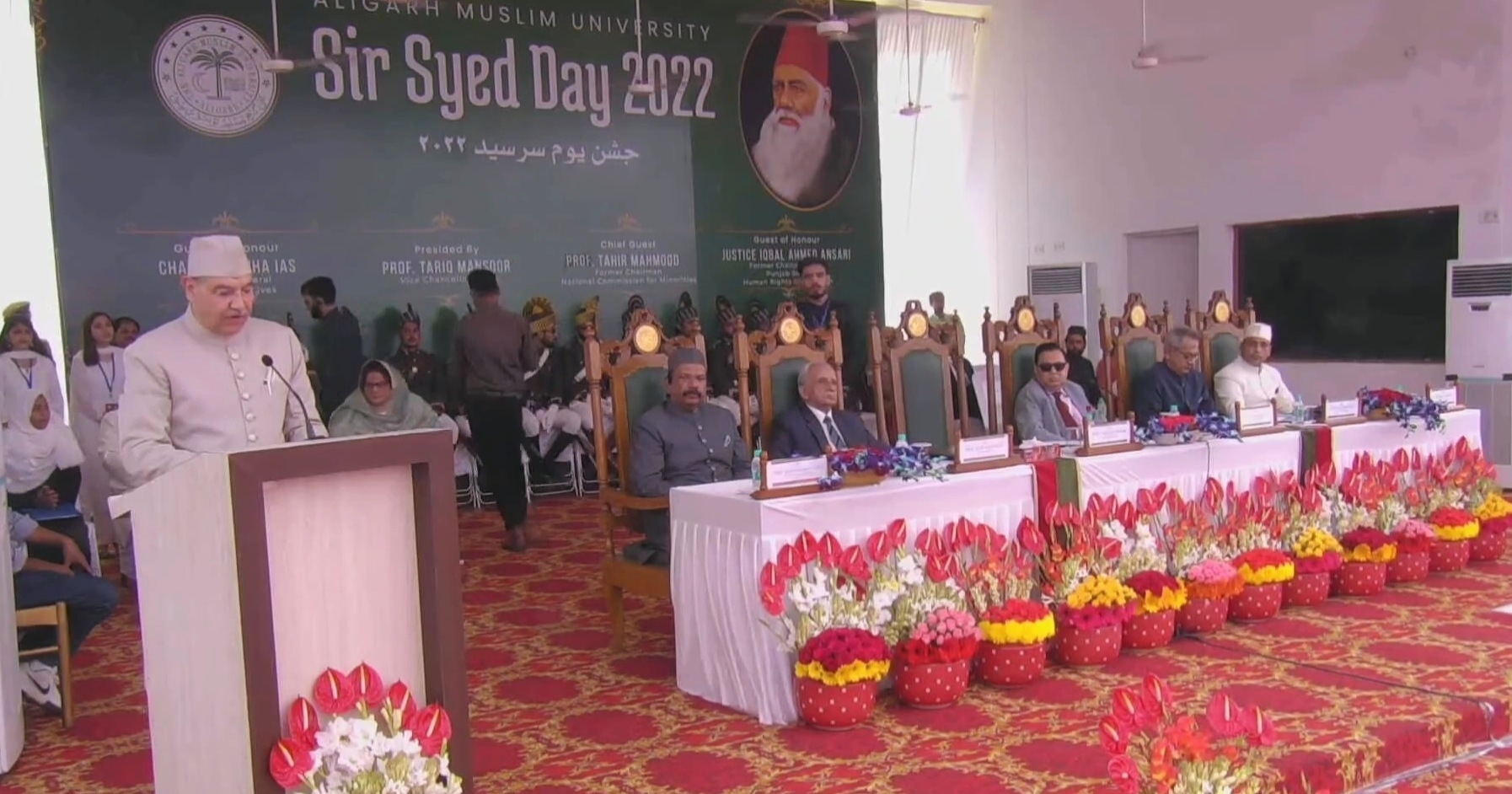 सोमवार को सर सैयद अहमद खान की जयंती पर विश्विद्यालय परिसर में दिन भर मेला सा लगा रहा। इस अवसर पर प्रत्येक वर्ष की तरह इस बार भी एक कार्यक्रम आयोजित किया गया था। जिसमें कुलपति तारिक मंसूर, मुख्य अतिथि के रूप में प्रोफेसर ताहिर महमूद – (पूर्व अध्यक्ष, राष्ट्रीय अल्पसंख्यक आयोग), साथ ही गेस्ट ऑफ ऑनर, आईएएस चंदन सिन्हा – (डायरेक्टर जनरल, नेशनल आर्काइव) और जस्टिस इकबाल अहमद अंसारी – (पूर्व चेयरपर्सन, मानव अधिकार आयोग पंजाब) शामिल हुए।