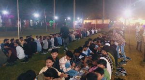 डिनर के लिए दस्तरख्वान पर बैठे छात्र (मुमताज़ हॉस्टल)[/caption]