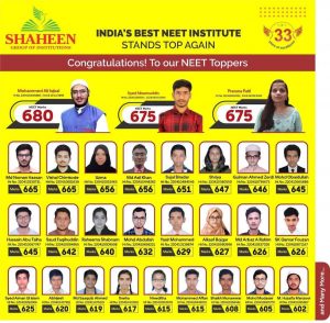 शाहीन ग्रुप ऑफ इंस्टीट्यूशंस के लगभग 450 छात्रों का चयन एमबीबीएस के लिए हुआ है। शाहीन के दो छात्र आल ओवर इंडिया 1,000 रैंक के अंदर हैं, तीन छात्र 2000 एआईआर रैंक के अंदर, पांच छात्र 3,000 रैंक के अंदर, सात छात्र 4,000 रैंक के अंदर और आठ छात्र 5,000 आल ओवर इंडिया रैंक के अंदर हैं।