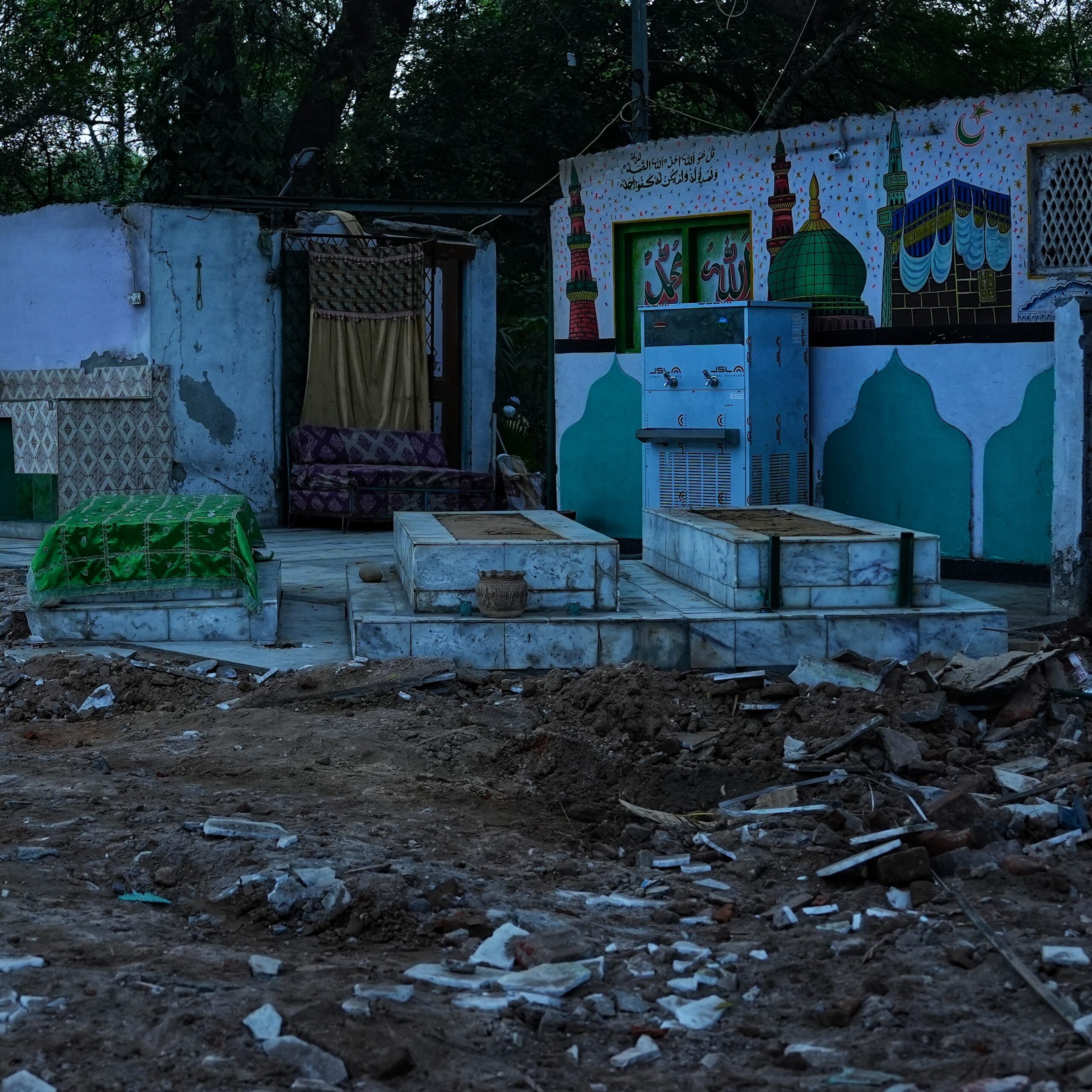“I used my grinder to cut the metallic canopy so that there would be no beadbi (disrespect) to our religion. However, they loaded it into a bulldozer bucket and dumped it 50 meters away at an unclean spot,” said Siddique.