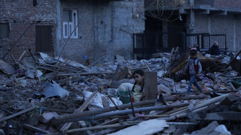 Children collecting valuables in the rubble following demolition of their homes by DDA on February 15. | Picture: Arbab Ali[/caption]