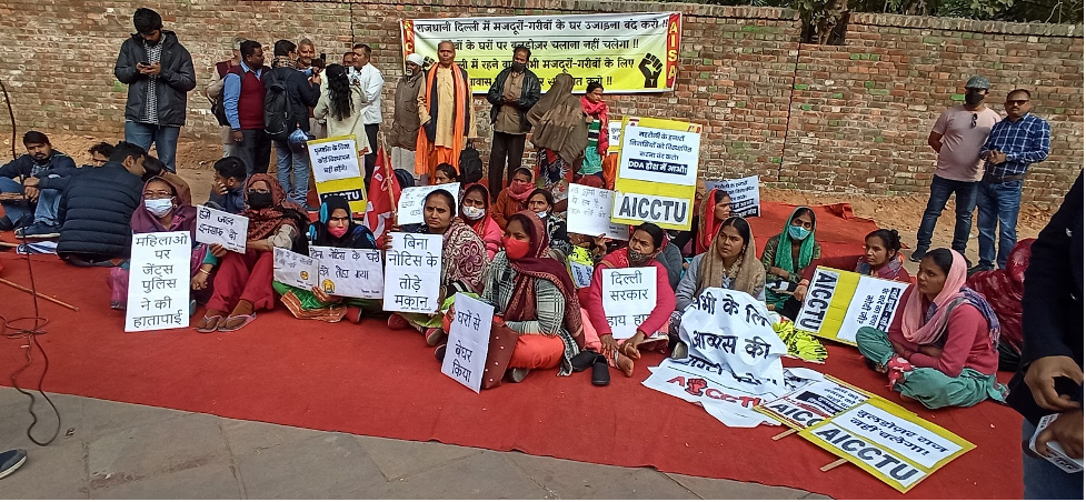 On January 20, on the behalf of the residents, the All-India Students Association (AISA) and All India Central Council of Trade Union (AICCTU) organized a protest at Delhi’s Jantar Mantar against the demolition notice.