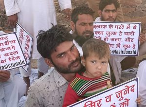राजस्थान के जुनैद और नासिर की हत्या के एक हफ्ते बाद भी पुलिस खाली हाथ हैं। शुक्रवार को जुमे की नमाज़ के बाद जुनैद और नासिर के लिए इंसाफ की मांग को लेकर हजारों की संख्या में लोगों ने फिरोजपुर झिरका रोड के अंबेडकर सर्किल पर प्रदर्शन भी किया। वहीं भरतपुर के घटमीका गांव में आरोपियों की गिरफ्तारी की मांग को लेकर धरने पर बैठे मृतक जुनैद और नासिर के परिजनों को भरतपुर प्रशासन की ओर से शांतिभंग का नोटिस दिया गया है।भरतपुर ज़िले के घटमीका गांव के 27 वर्षीय नासिर और 35 वर्षीय जुनैद की बीते 16 फरवरी को गौरक्षक दल और बजरंग दल के मोनू मानेसर और उसके साथियों ने हत्या कर दी थी। घटना के एक हफ्ते बीतने के बाद भी राजस्थान और हरियाणा पुलिस आरोपियों को गिरफ्तार करने में नाकाम रहीं हैं या यूं कह लें कि आरोपियों को पकड़ना ही नहीं चाह रहीं हैं। भरतपुर प्रशासन ने नासिर और जुनैद के लिए न्याय की मांग को लेकर धरना दे रहे नासिर और जुनैद के चचेरे भाई समेत 12 लोगों के विरुद्ध शांति भंग का नोटिस जारी किया है।