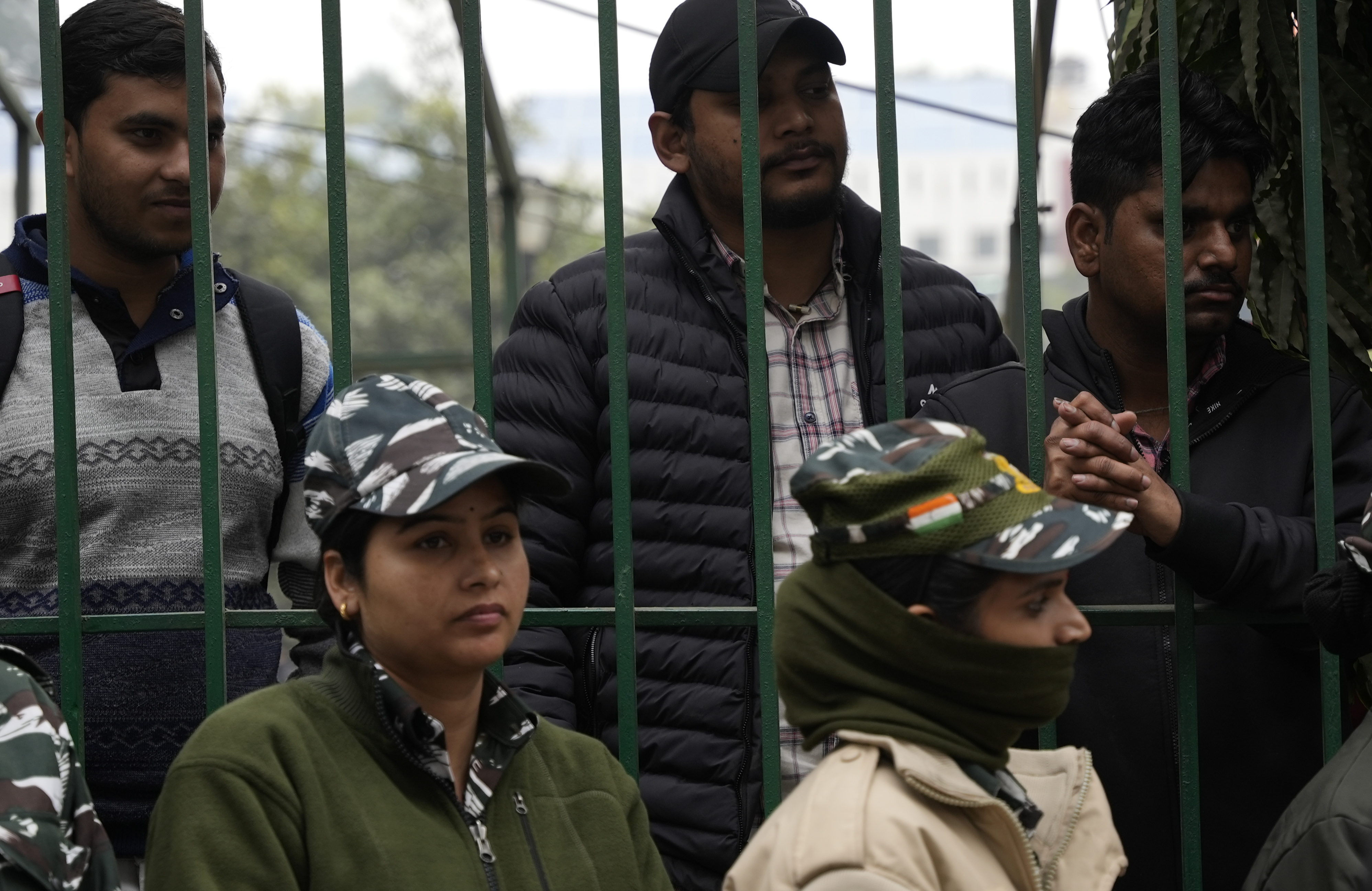 Female paramilitary personnel stand guard outside Jamia campus. | TCN Photo by Arbab Ali[/caption]